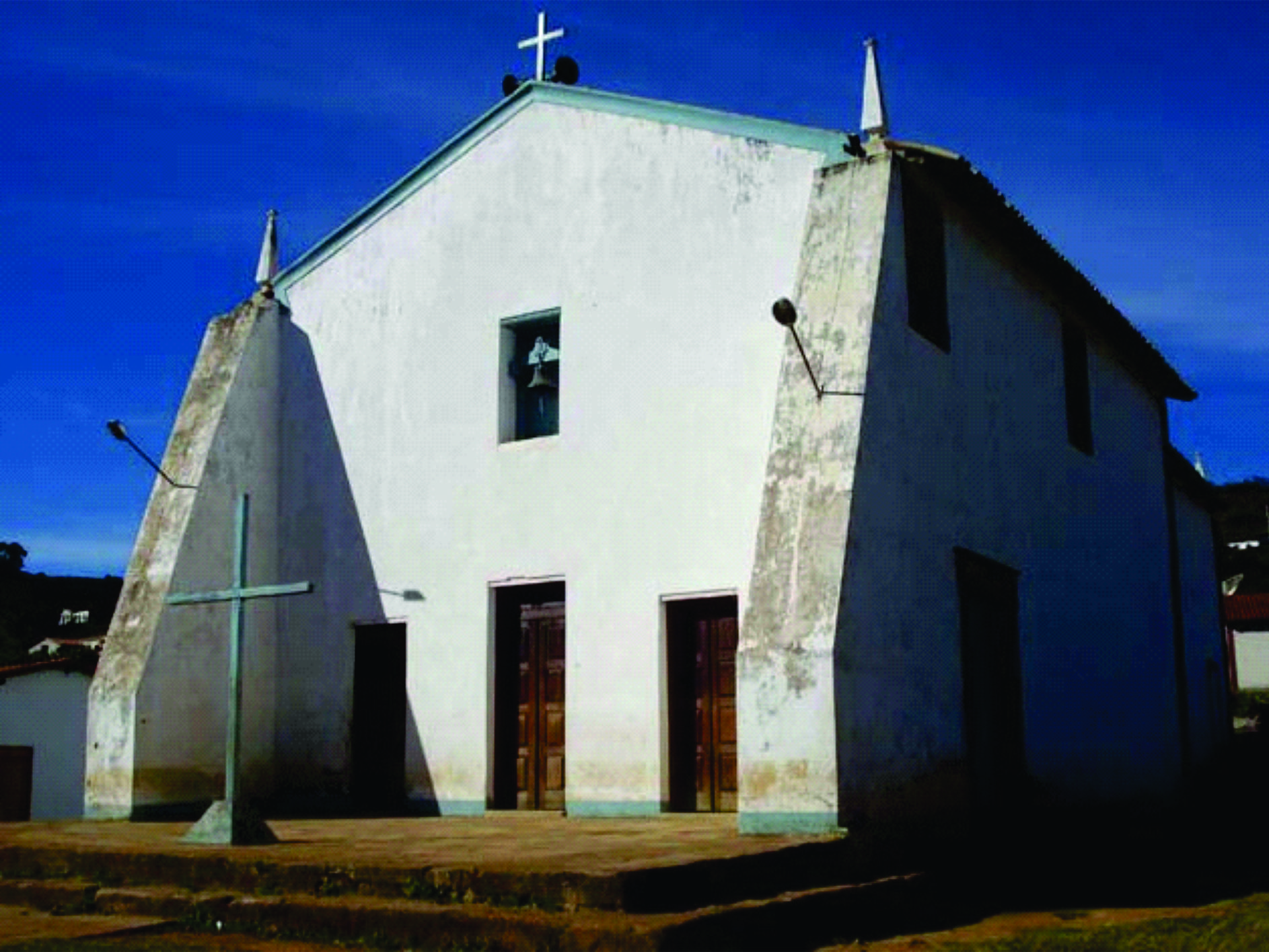 Dentro do Município de Rio de Contas, destaca‐se ainda a Igreja de Santo Antônio (Figura 21). Situada a 18 km do sítio histórico (ao Norte), no povoado de Mato Grosso, esta igreja foi construída no início da colonização da região, na década de 1710, época em que foi criada a primeira Freguesia do Alto Sertão Baiano, chamada Santo Antônio do Mato Grosso. Trata‐se de um edificação descaracterizada, que sofreu muitas mutilações e inserções de elementos inadequados (AZEVEDO, 1980), como contrafortes para estruturar a fachada frontal construída em 1950 e recuada 6,20 metros em relação à fachada original que desabou na década de 1940. A planta configura‐se em “T”, com nave e capela‐mor e sacristia. Este edifício não está inscrito nos livros de tombo, mas está presente no imaginário dos moradores locais. A história popular narra a construção deste edifício como sendo o pagamento de uma promessa feita a Santo Antônio por um milagre alcançado (SILVA, 2008).